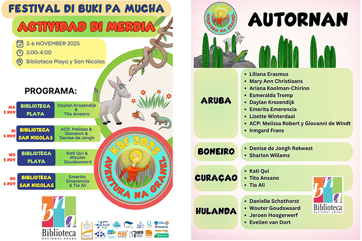 Biblioteca Nacional Aruba (BNA) ta presenta Festival di Buki pa Mucha 2025. Un proyecto cu ta consisti di hopi evento, bishita na scol y produccion di un buki special, tur pa stimula lesamento cerca mucha. E tema di e festival 2025 ta ‘Aventura na granel’.