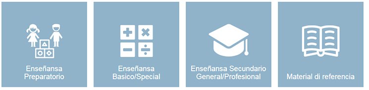 E portal ta contene pa un gran parti edicionnan di Seccion Desaroyo di Curiculo como tambe material di referencia desaroya pa Proyecto Idioma den Enseñansa. Ta trata di e.o. buki di alumno y manual pa docente di e diferente metodonan cu a desaroya pa tur tipo di scol, como tambe tur e materialnan di sosten cu ta pertenece na e metodonan, manera buki di lesa, poster, wega, flipcards y material audiovisual (video y cantica). Acceso na e portal ta exclusivamente pa e sector di enseñansa, caminda cada scol y directiva a haya nan propio cuenta di usuario pa por log in.