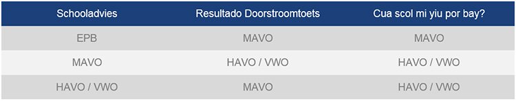 - 20% di e alumnonan a score nivel HAVO/VWO