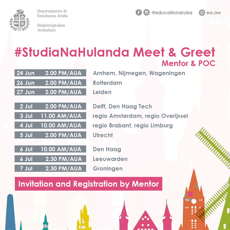 Arubahuis conhuntamente cu mentoren y Plaatselijke Opvangcommissies (POC) di cada ciudad/regio ta organisa diferente “Online Meet&Greet” pa esnan cu ta preparando pa bay studia na Hulanda entrante augustus 2020.