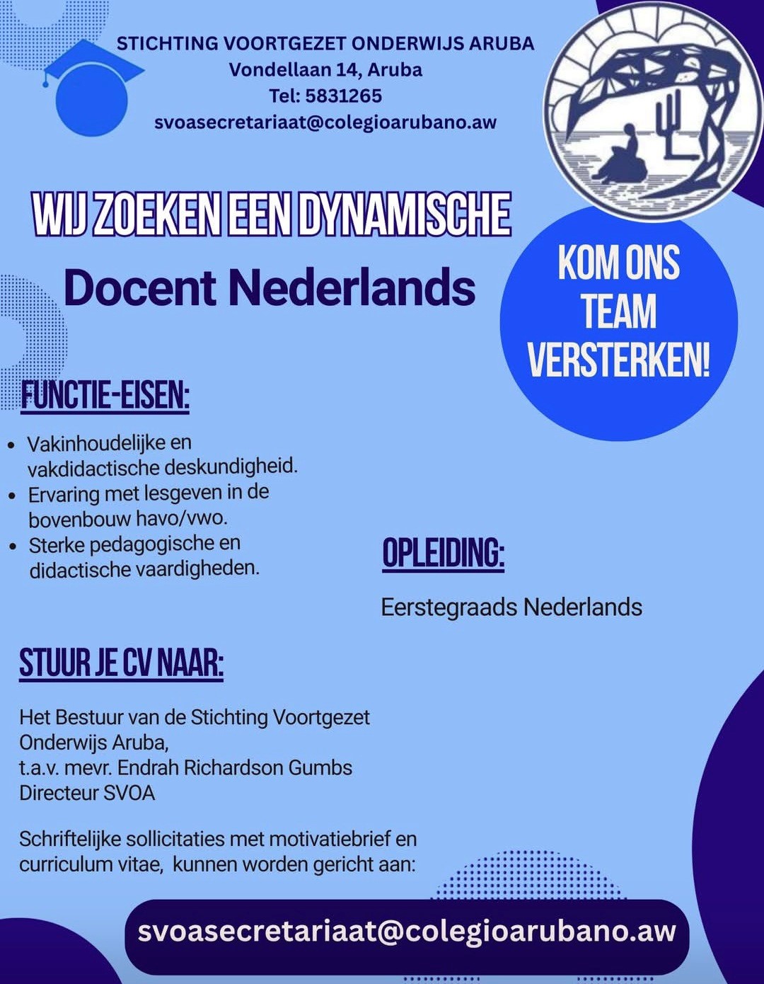 Werken in het Onderwijs op Aruba | Employment in Education in Aruba