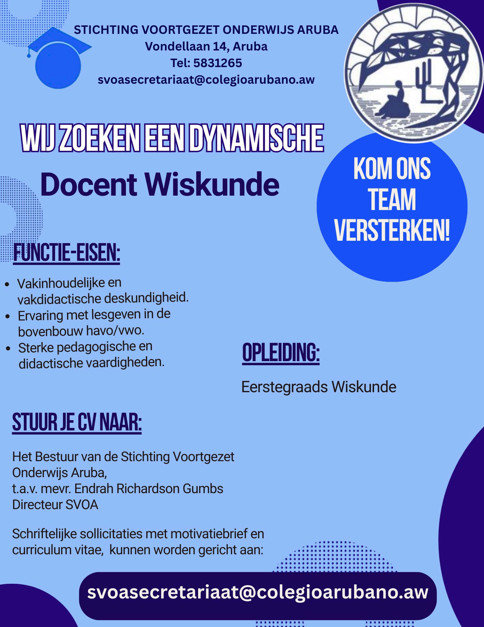 Organisatie: Stichting Voortgezet Onderwijs Aruba (SVOA)